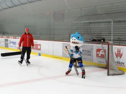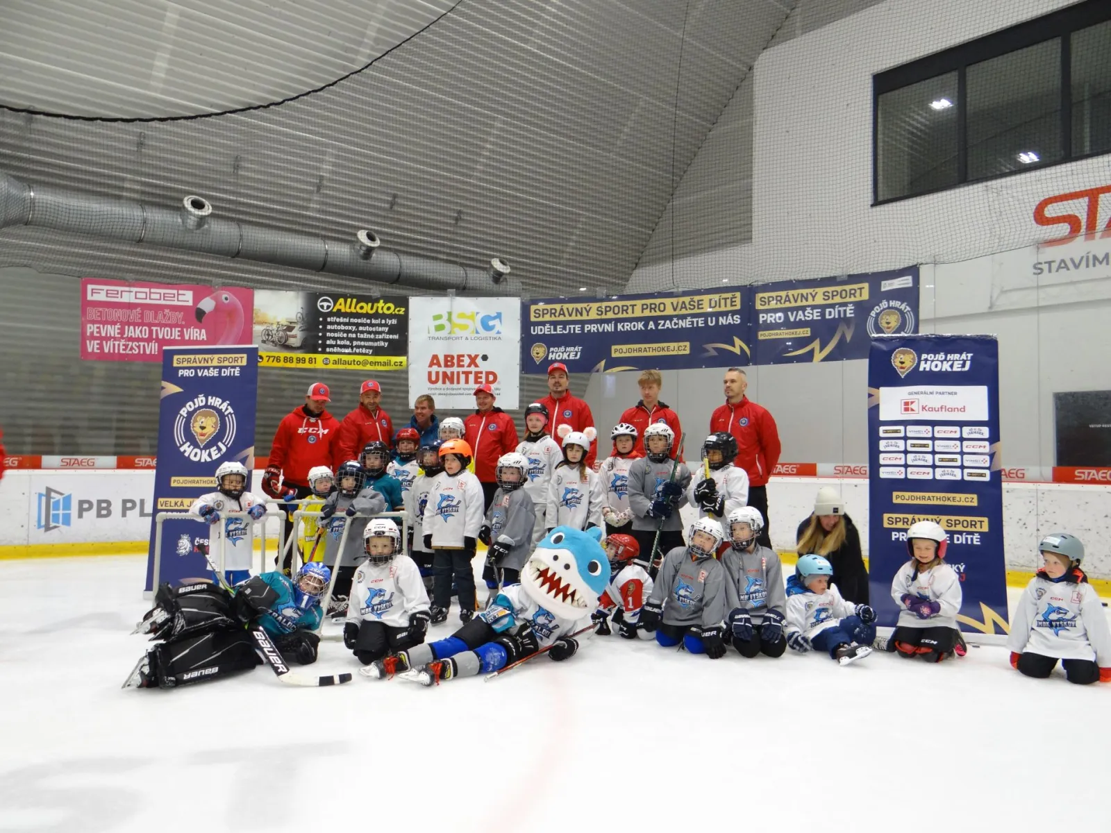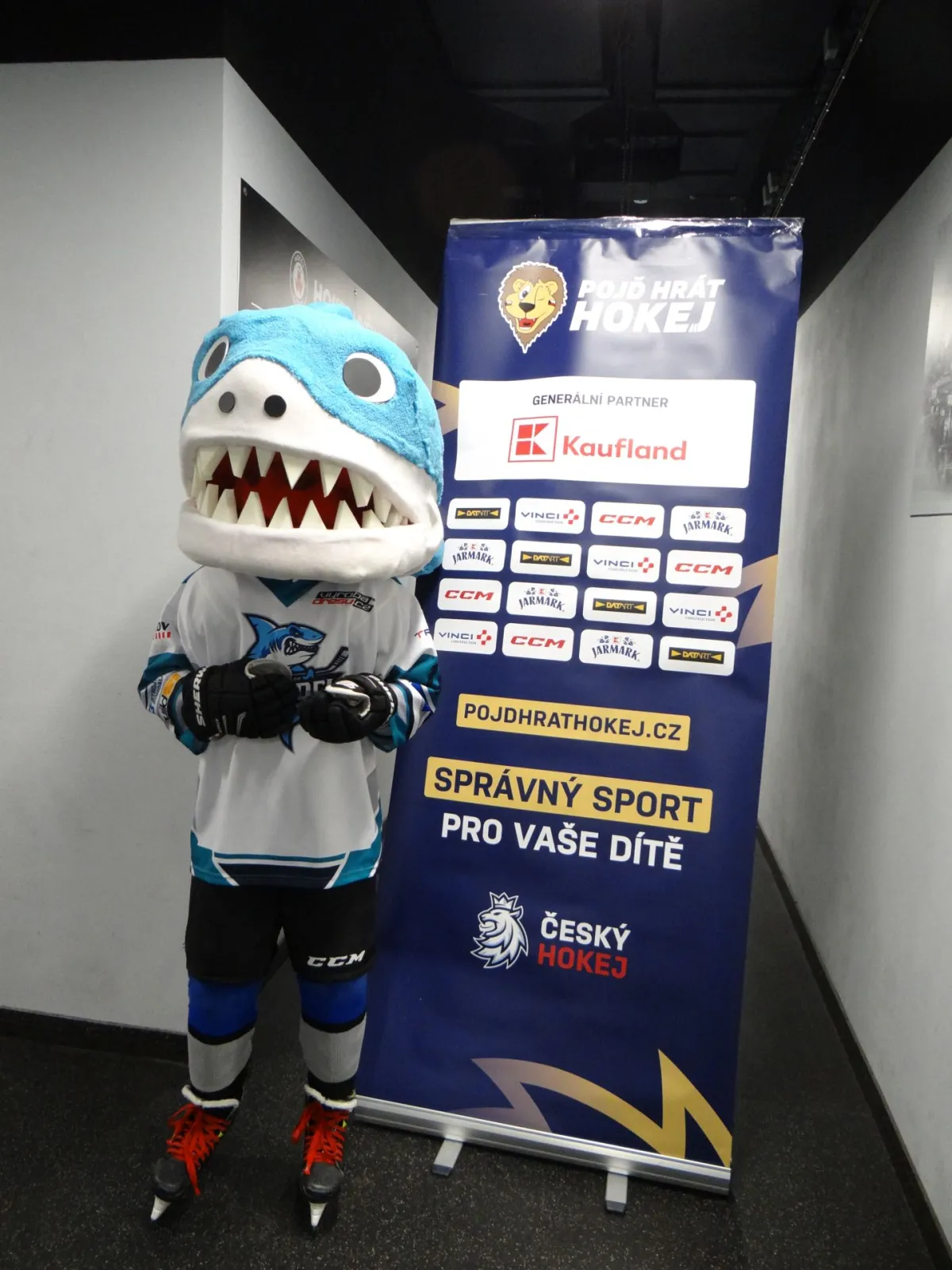 Velkým zpestřením programu byla účast klubového maskota Žraloka, kterého děti potkaly nejen na ledě, ale i v kabině. O zábavu a dobrou náladu tak rozhodně nebyla nouze.